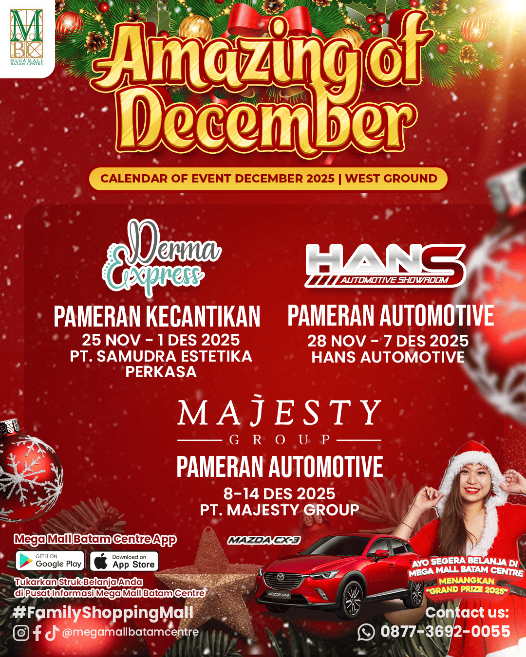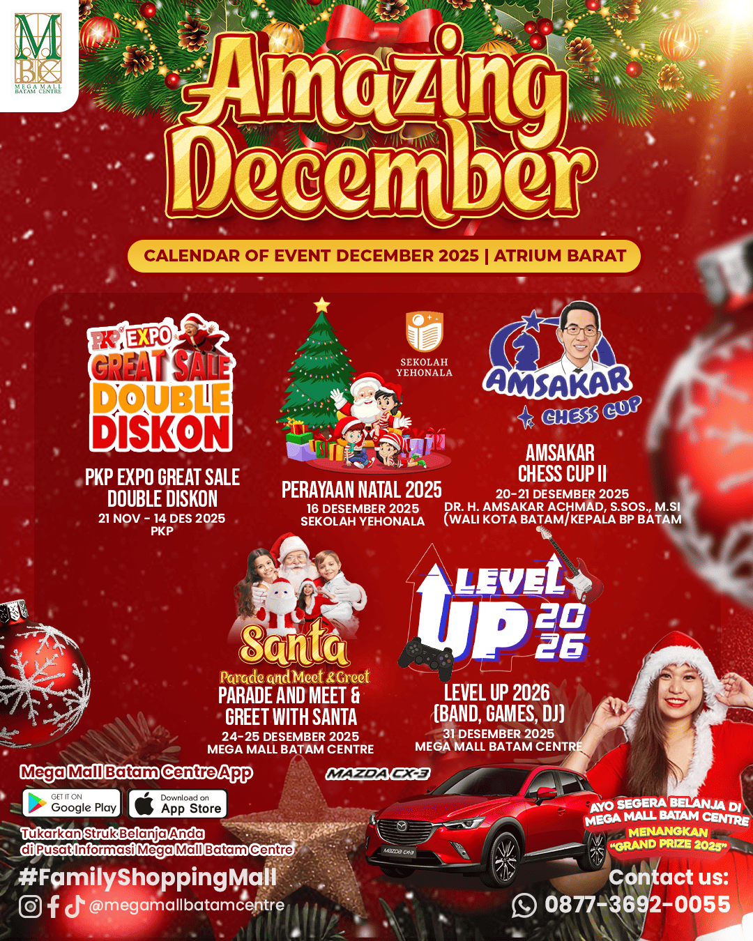 Di bulan Desember yang sangat luar biasa ini, Mega Mall Batam Centre akan mengadakan event-event yang pastinya seru, asik dan pasti kalian tunggu-tunggu banget nih.😍