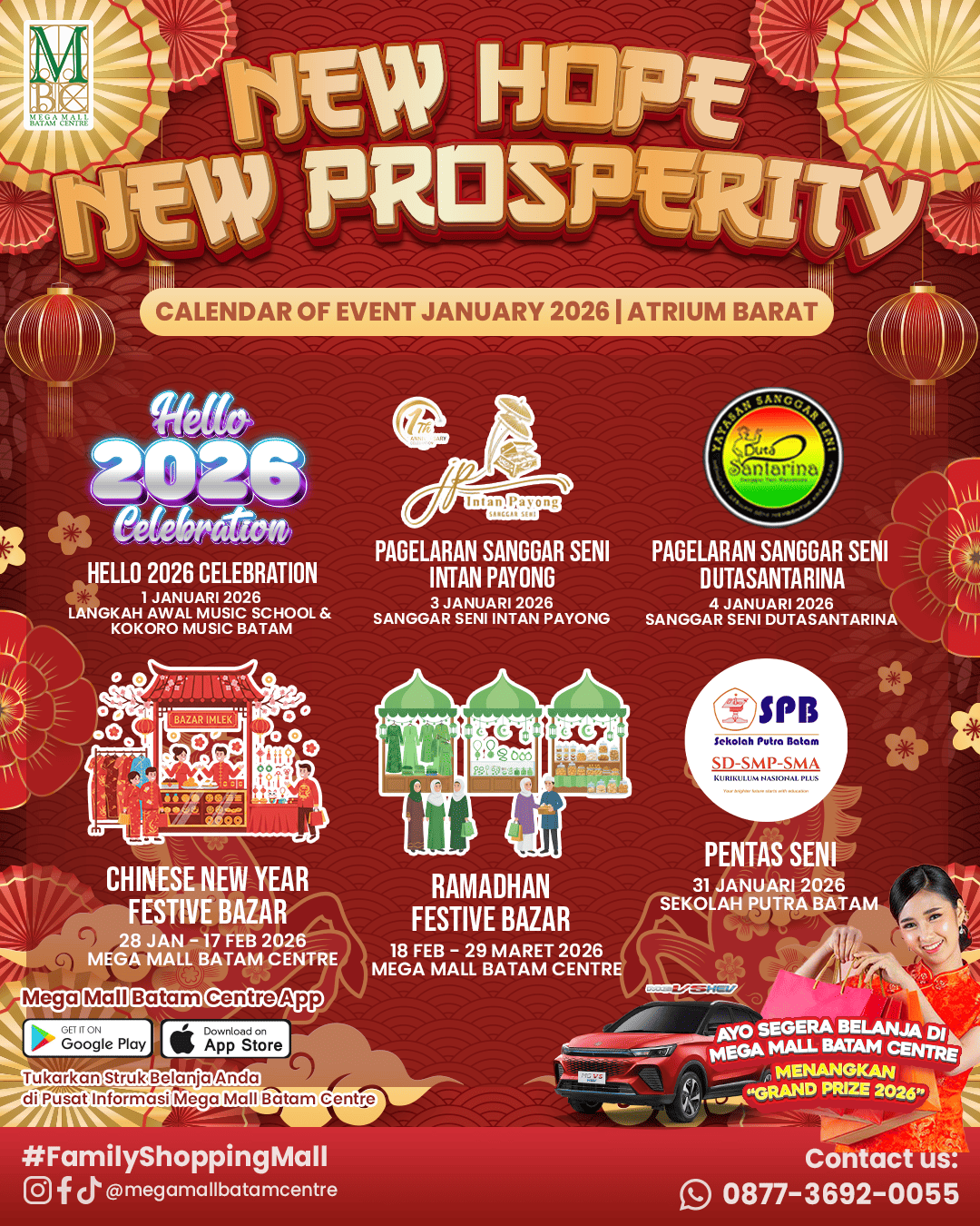 Bulan ini Mega Mall Batam Centre bakal jadi pusat keseruan! Mulai dari perayaan Imlek yang megah sampai persiapan menyambut bulan suci Ramadhan. Yuk, cek jadwal lengkapnya biar nggak ketinggalan momen serunya: