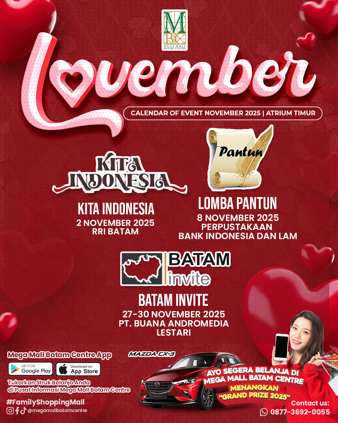 Sumber (admin) | tanggal posting : 01/11/2025Di bulan November yang sangat special ini, Mega Mall Batam Centre akan mengadakan event-event yang pastinya seru, asik dan pasti kalian tunggu-tunggu banget nih.😍